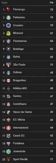 Com os resultados, o Ceará fechou na 17ª posição, também com 43 pontos.