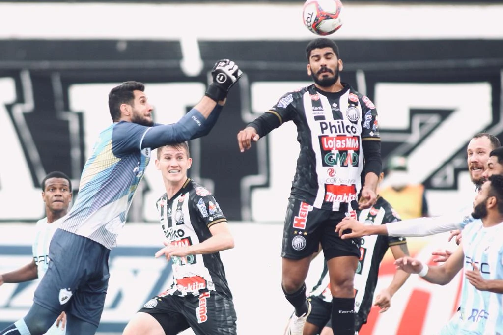 Em um escanteio cobrado pelo camisa 10, Danilo, aos 17 minutos do segundo tempo, o atacante Salatiel cabeceou contra a trave do goleiro Simão e abriu o placar para o Tubarão.