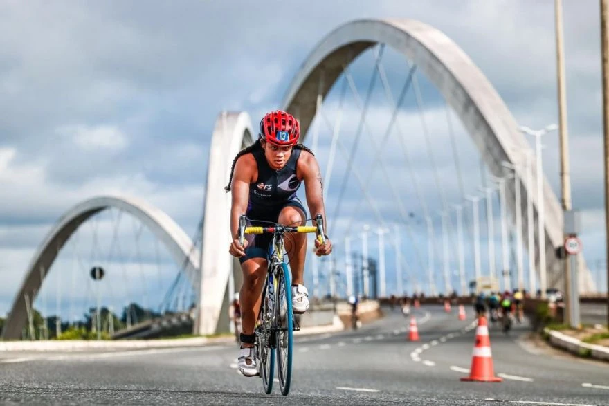 Na sequência, os atletas do sprint encararam mais 20 km de ciclismo. "Passamos pela ponte JK, demos duas voltas. Era uma parte dura pois havia subidas, e geralmente as provas aqui no Paraná, Santa Catarina são bem planas. Consegui ficar em um bom pelotão na primeira volta e na segunda consegui ficar revezando um outra competidora. Fiz uma boa transição da bike para corrida também", conta Maria.