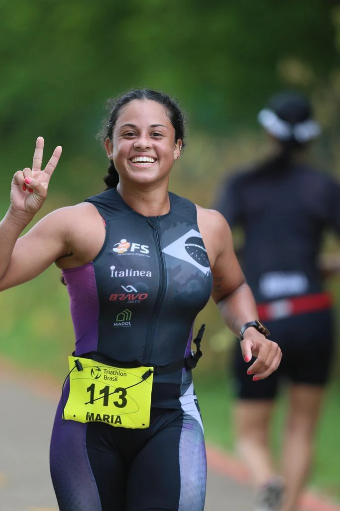 Estudante de Educação Física na Universidade Estadual de Ponta Grossa (UEPG), Maria, de 19 anos, treina e participa de competições esportivas desde os 11 anos. Aos 17 começou no triathlon, teve um período de pausa por conta do início da pandemia, mas neste ano voltou a treinar e se preparar para o Campeonato Brasileiro.