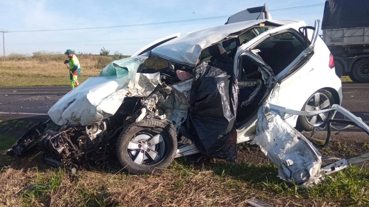 Segundo a Polícia Rodoviária Federal, as duas vítimas fatais são dois adultos que ocupavam o automóvel VW Fox, licenciado em Palmeira. Outros dois ocupantes sofreram lesões graves e um bebê saiu ileso do acidente.