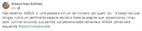 A amiga Elisa Bellotto Dal Pizzol escreveu: "Vai deixar muita saudade amiga