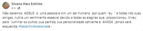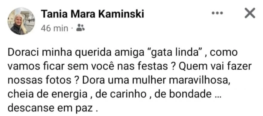Tânia Mara Kaminski compartilhou que 'Dora' era uma mulher "cheia de energia" e de carinho.