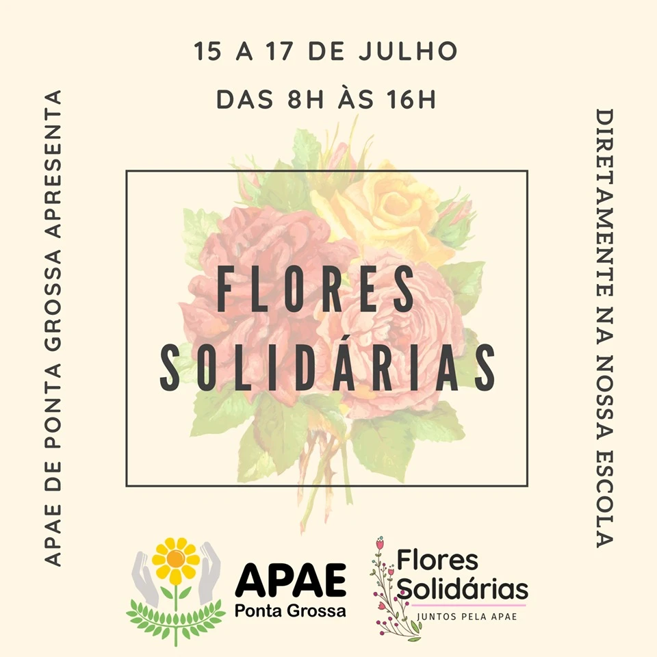 De 15 a 17 de julho a APAE de Ponta Grossa realiza a Feira de Flores Solidária. A ação tem o propósito de arrecadar fundos para a instituição.