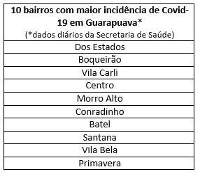 Após o início do período de alerta epidemiológico, em 17 de junho, Guarapuava teve a confirmação de 151 novos casos. “Alguns fatores contribuem para essa crescente, como a proximidade com o período que consideramos ser de pico no Estado, além da ampliação em nossa testagem. Estamos testando quase que diariamente todos os casos monitorados e, como consequência, a medida que os resultados chegam, os números aumentam. Esse aumento já era previsto e, por isso, nos antecipamos estabelecendo as medidas mais rigorosas que, se tiverem apoio e adesão popular massiva, contribuirão para estabilizarmos nossa curva de incidência local”, afirmou o secretário de Saúde, Jonilson Pires.