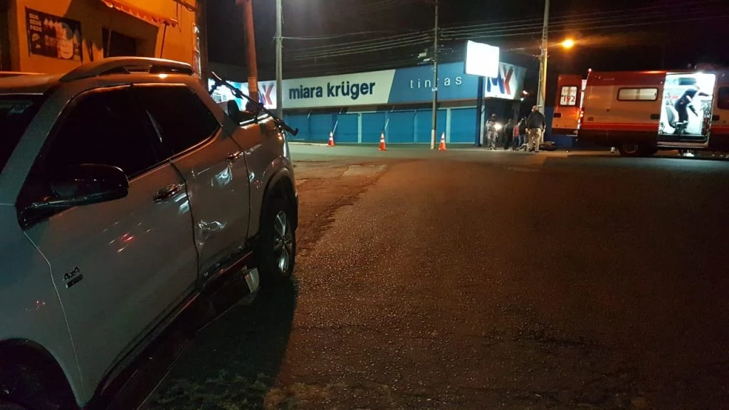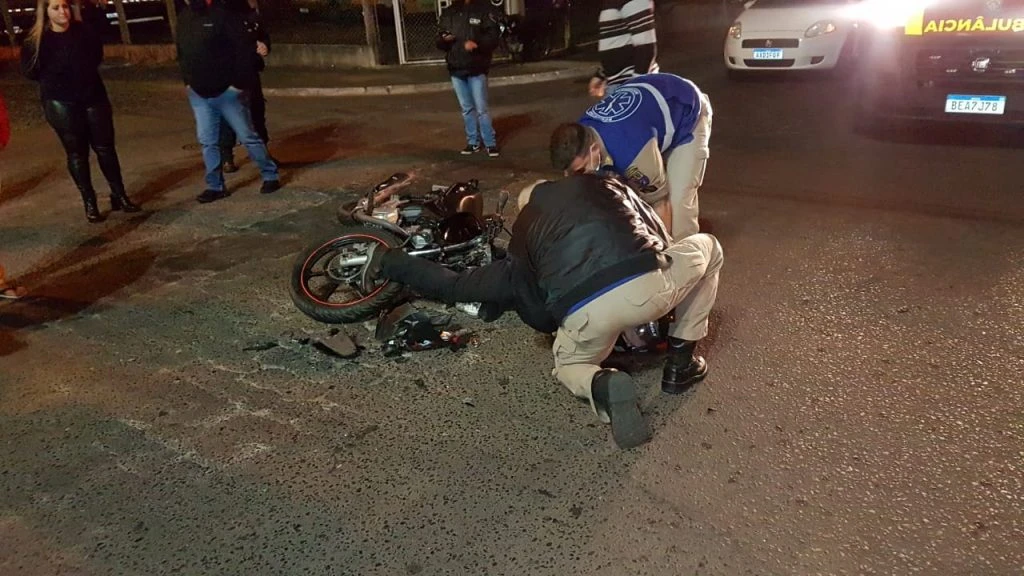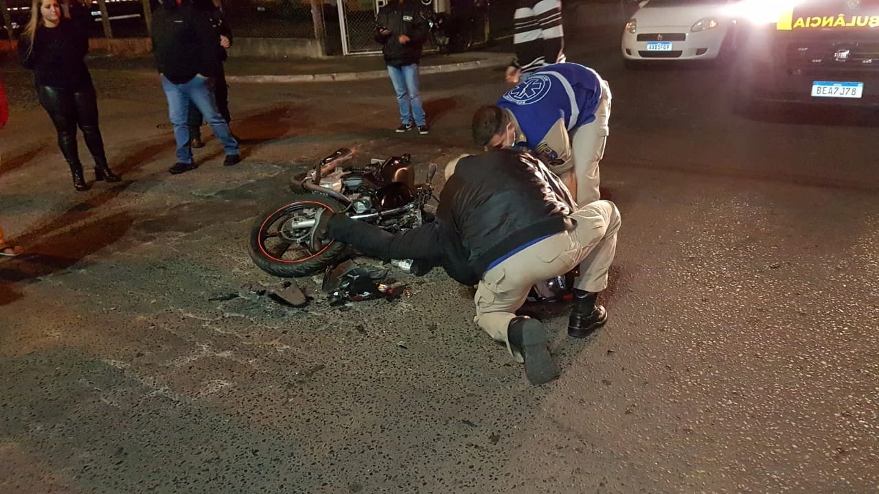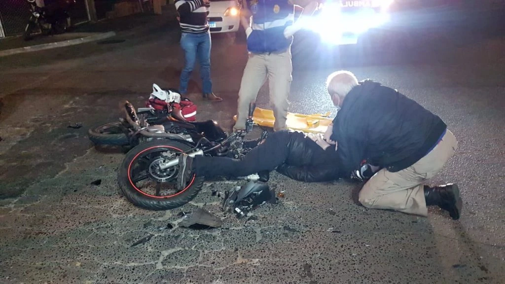 Na noite deste sábado (01), uma batida entre um carro e uma moto na rua Dm Pedo II, esquina com a rua Frei Madre de Deus, no bairro Nova Rússia, deixou um motociclista gravemente ferido.