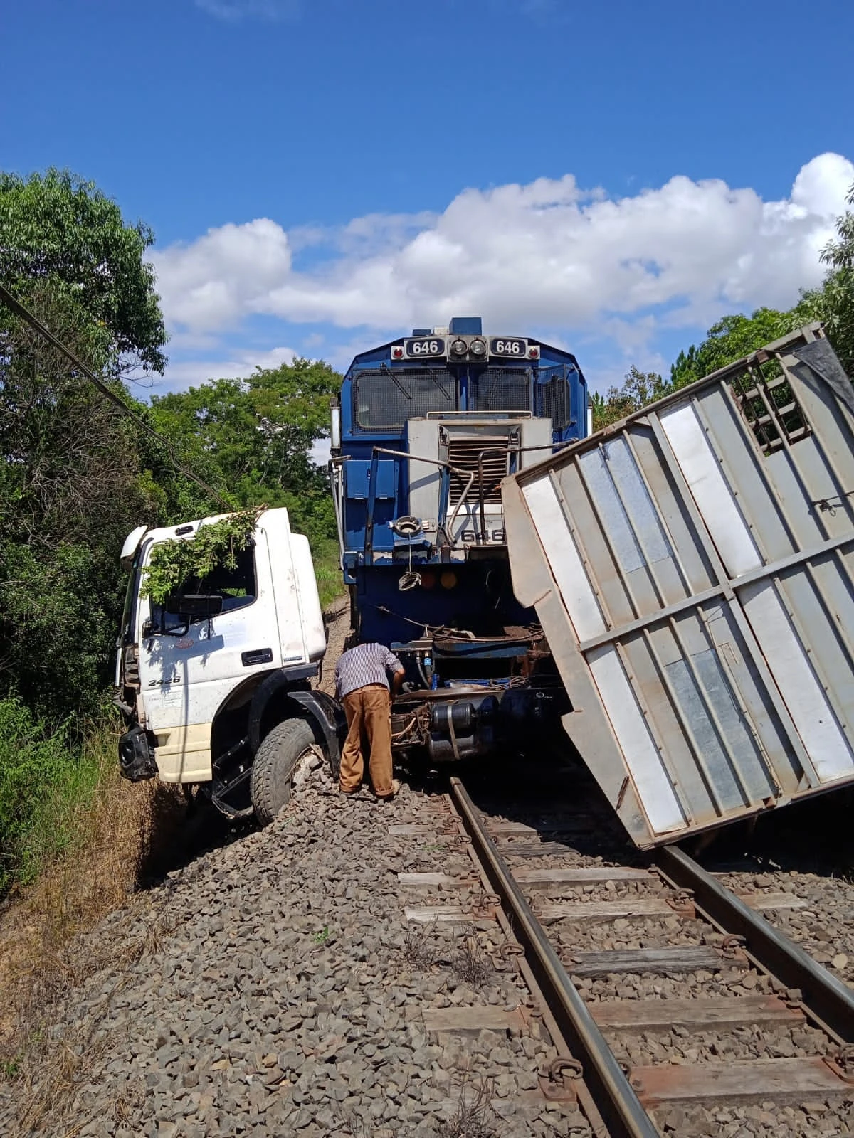 Um caminhão com carga viva colidiu contra um trem em Ipiranga, na região dos Campos Gerais, na tarde desta sexta-feira (4).