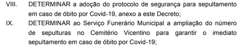 O prefeito Marcelo Rangel anunciou na tarde de ontem (20) medidas emergenciais para o enfrentamento do Covid-19 em Ponta Grossa. No decreto 17.144 publicado no diário oficial do dia 20 de março de 2020 o prefeito municipal determina ao Serviço Funerário a ampliação do número de sepulturas do Cemitério Vicentino para garantir o imediato sepultamento em caso de óbito pelo novo coronavírus.