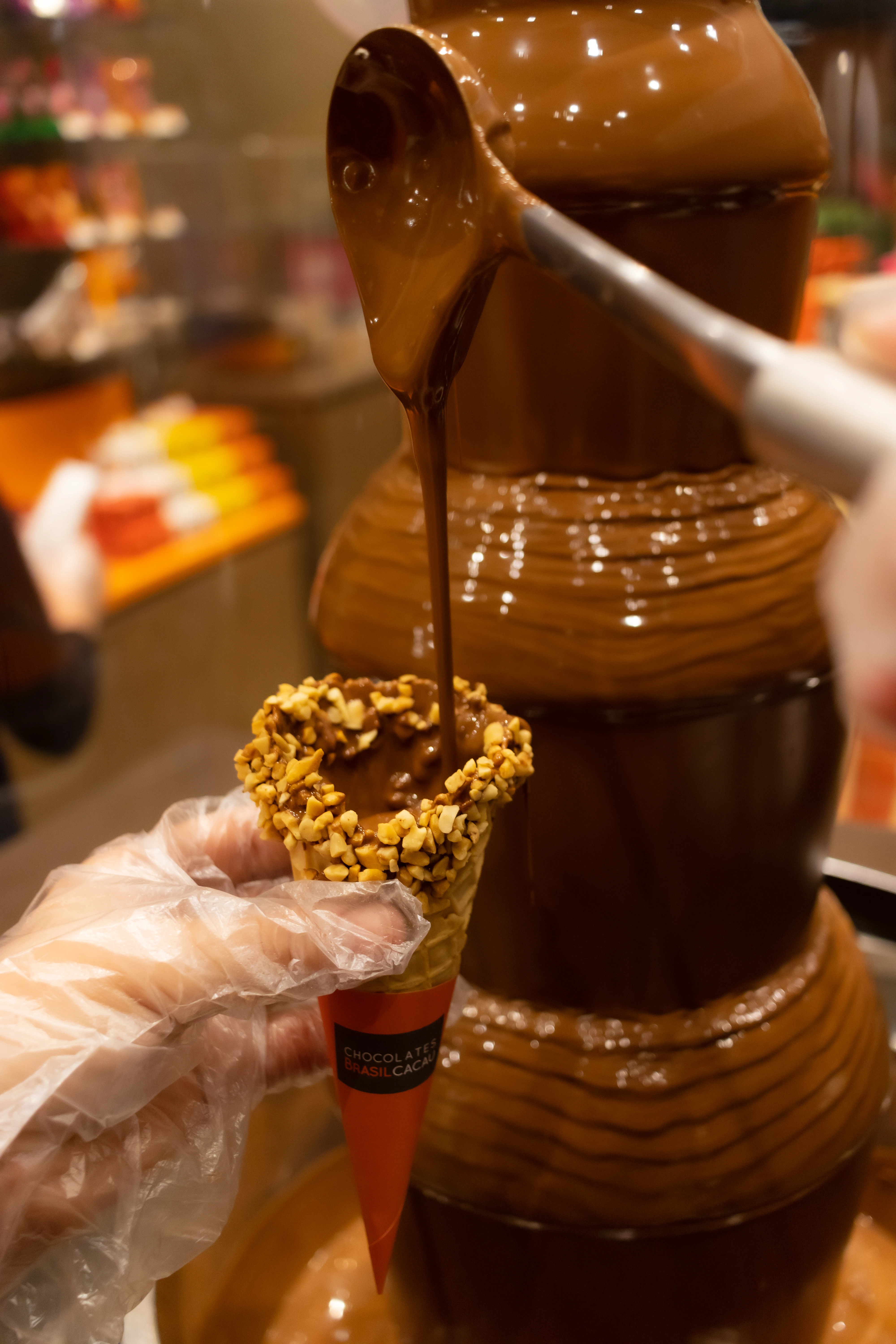 Com um layout novo e moderno, que remete a uma fábrica de chocolates, a Brasil Cacau reforça o seu grande sucesso de vendas, o fondue de frutas. Neste verão, a maior novidade fica por conta do cascão de sorvete, com recheio de chocolate, e a bebida gelada Trufamax, composta por sorvete e trufa, servida opcionalmente com café. Agora, quando o assunto se refere a chocolates zero glúten, a Brasil Cacau também se destaca como campeã na variedade, e é claro, sensacional no sabor. Grande parte do portfólio de produtos não possui glúten na sua composição, o que o torna atrativo para muitos consumidores que possuem essa condição nutricional.