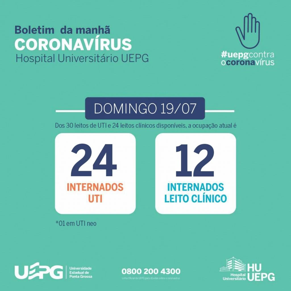 Na manhã deste domingo (19), a assessoria do HU-UEPG informou que, atualmente, 24 dos 30 leitos disponíveis estão ocupados. A taxa de ocupação é de 80%.