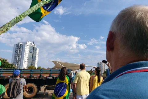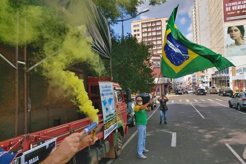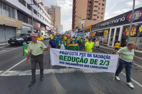 Um caminhão com fotos de ministros foi preparado para que os manifestantes pudessem jogar ovos podres. Às 16h os protestantes desceram a avenida Vicente Machado, sentido o Parque Ambiental, onde cantaram o hino nacional brasileiro.