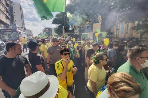 Anunciado há algum tempo, aconteceu na tarde deste domingo (15) o movimento pró-Bolsonaro na região central de Ponta Grossa. Centenas de pessoas estiveram no local com roupas da cor da bandeira nacional. Máscaras e álcool gel foram distribuídos na mobilização.