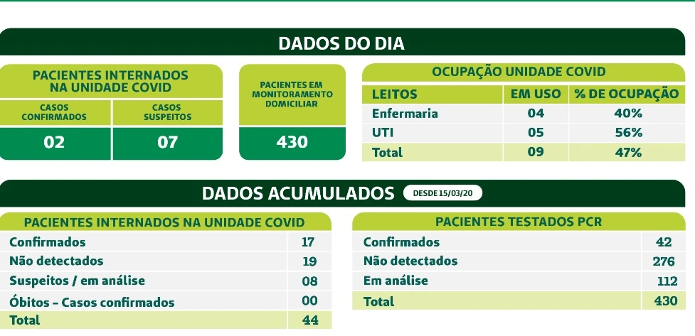 Diariamente a Secretaria de Saúde do Paraná, a Fundação Municipal de Saúde e o Hospital Universitário divulgam os dados de internamentos de pacientes contaminados com a Covid-19 em Ponta Grossa. Os dados são essenciais para o monitoramento da situação no município. Entre os hospitais privados, somente o HGU (Hospital Geral Unimed) divulga todos os dias os dados atualizados dos internamentos no hospital.