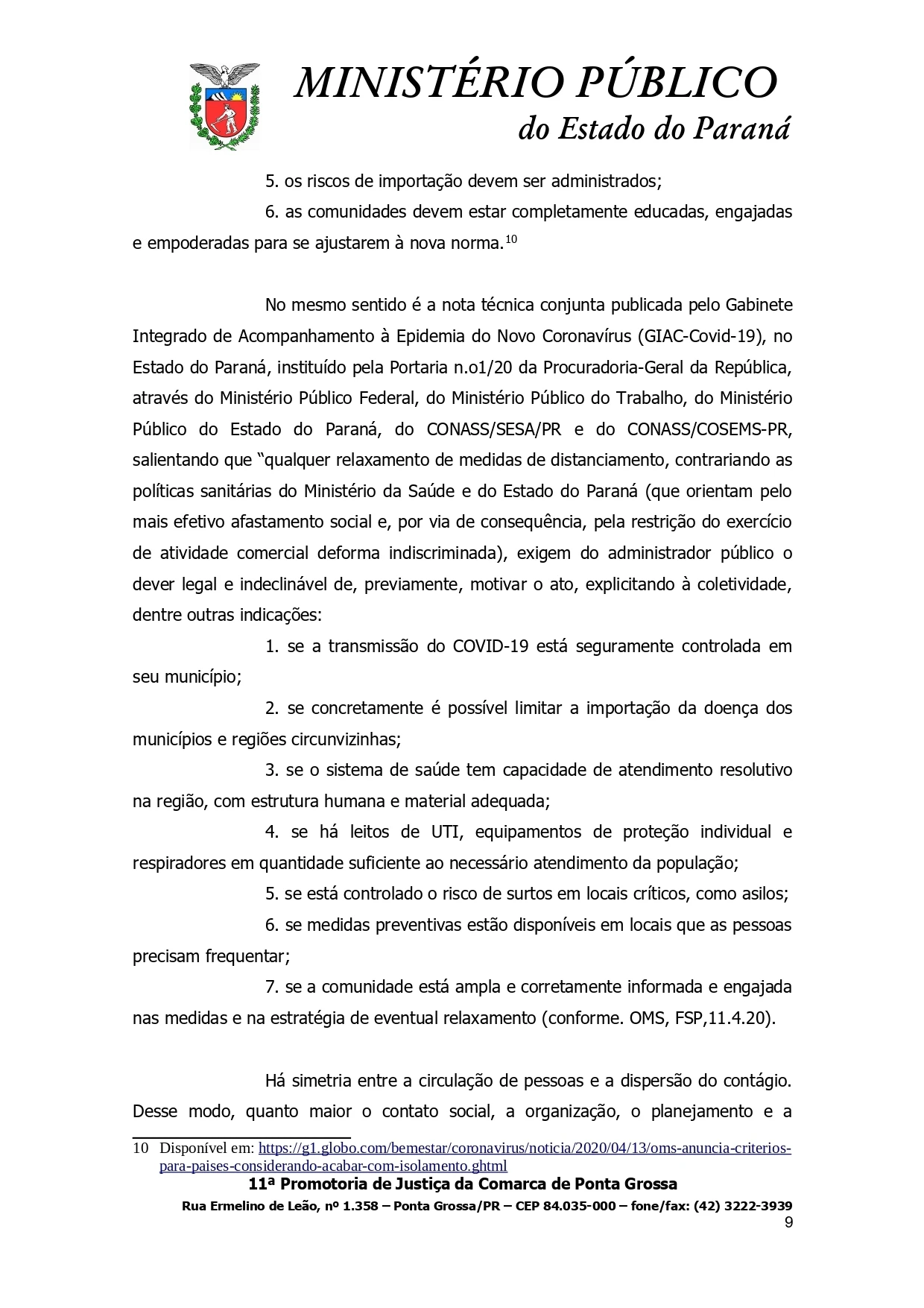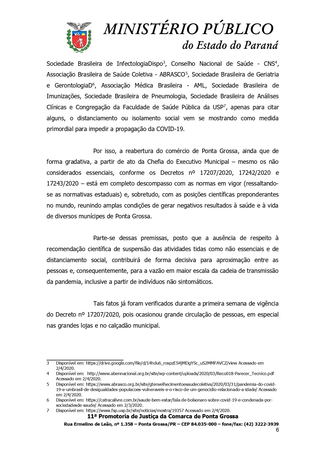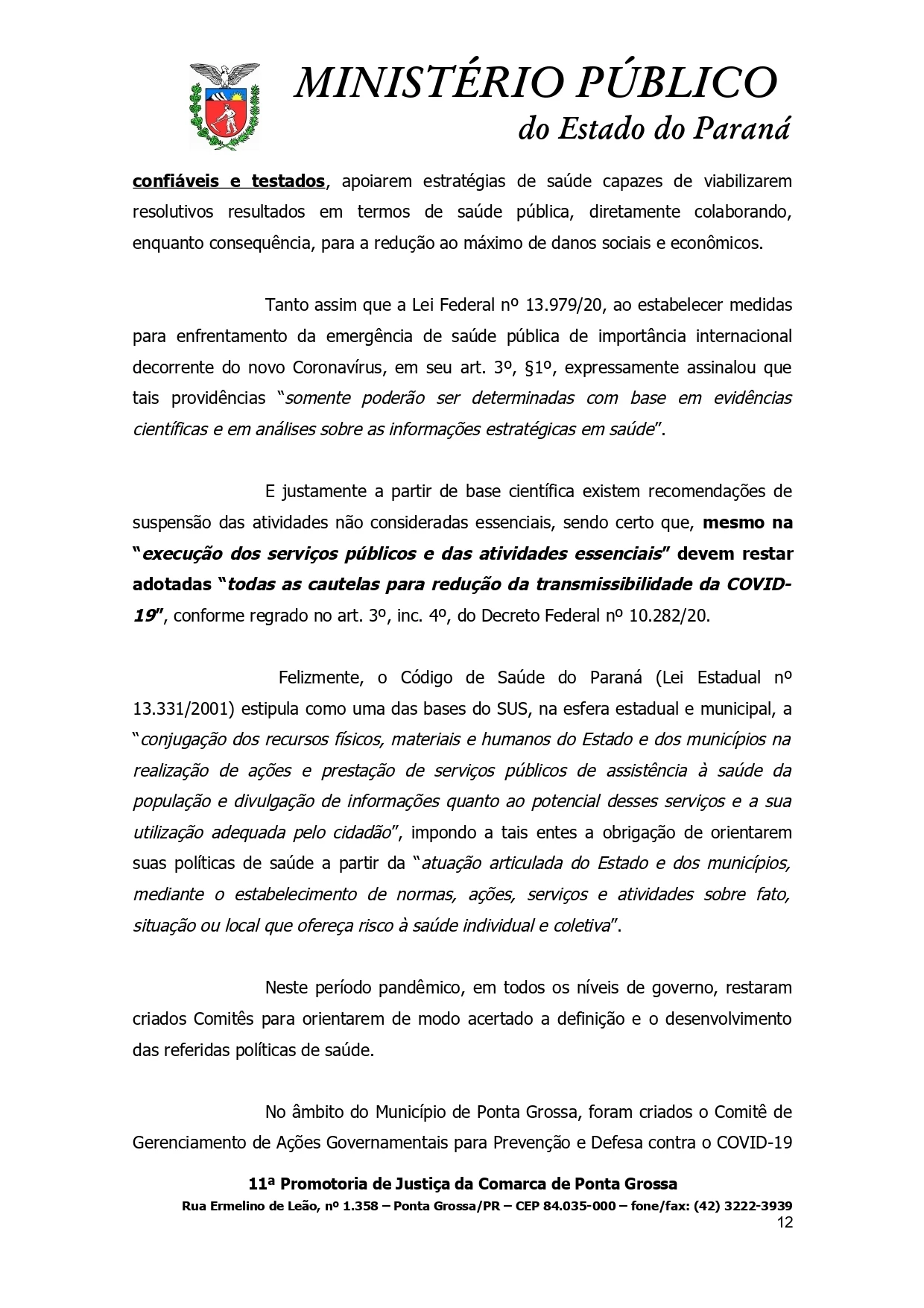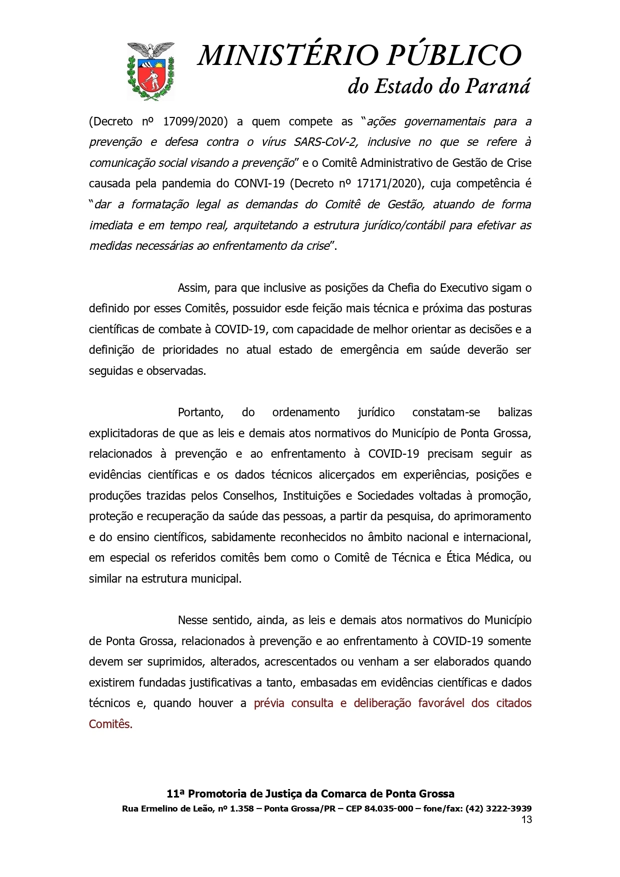 No dia 09 de abril, o MP fez recomendações administrativas sobre a reabertura gradual do comércio e pediu que a Prefeitura enviasse dados técnicos que embasaram a decisão, mas não houve resposta.