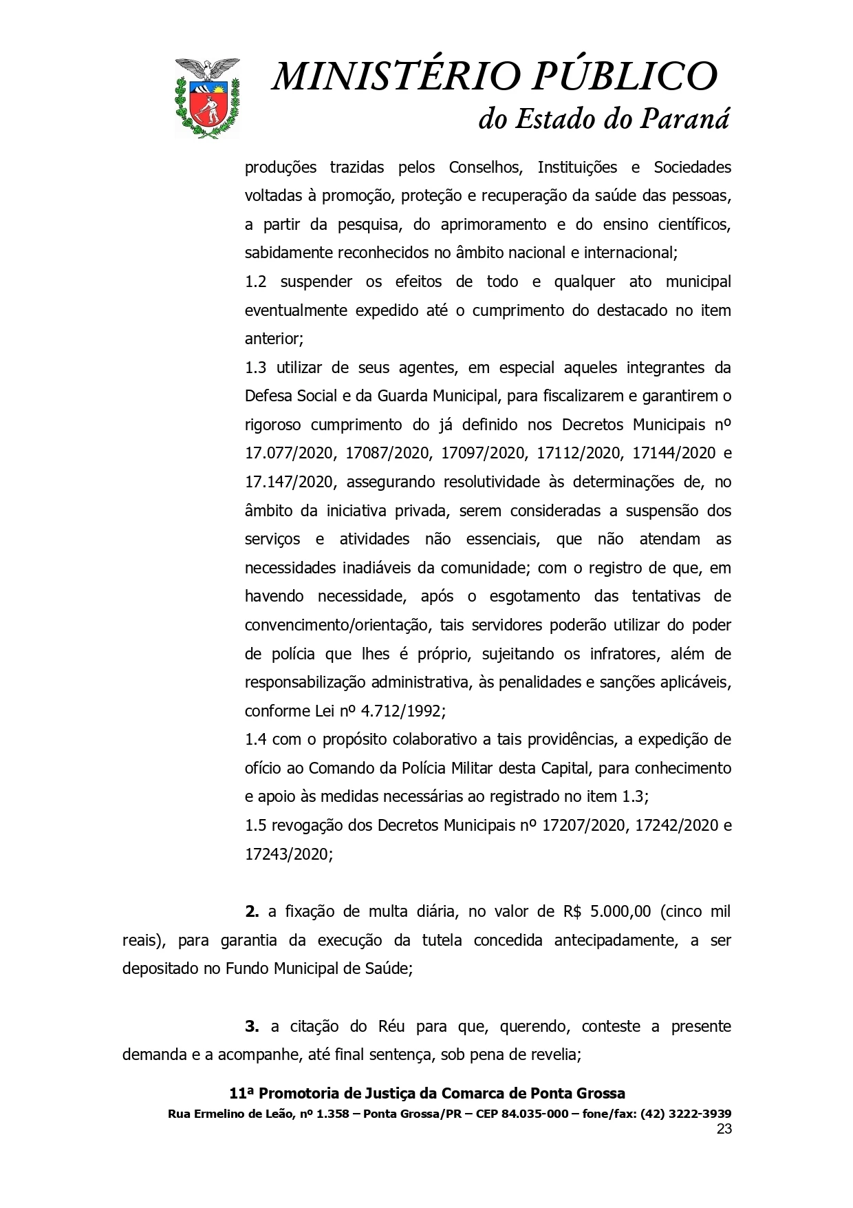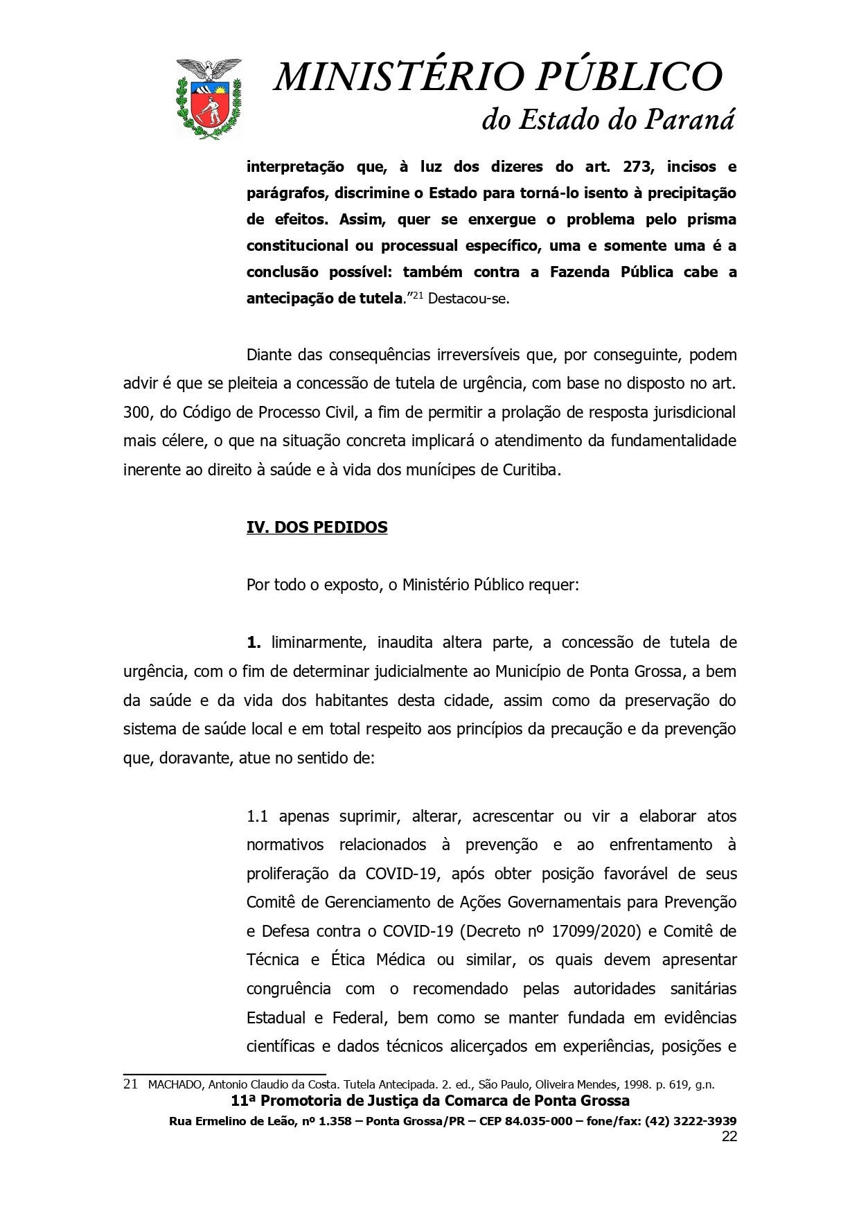 Nesta terça-feira (14), o Ministério Público entrou com uma ação pedindo o fechamento imediato do comércio de Ponta Grossa. A responsável pela ação é a promotora de Justiça, Fernanda Basso Silvério.