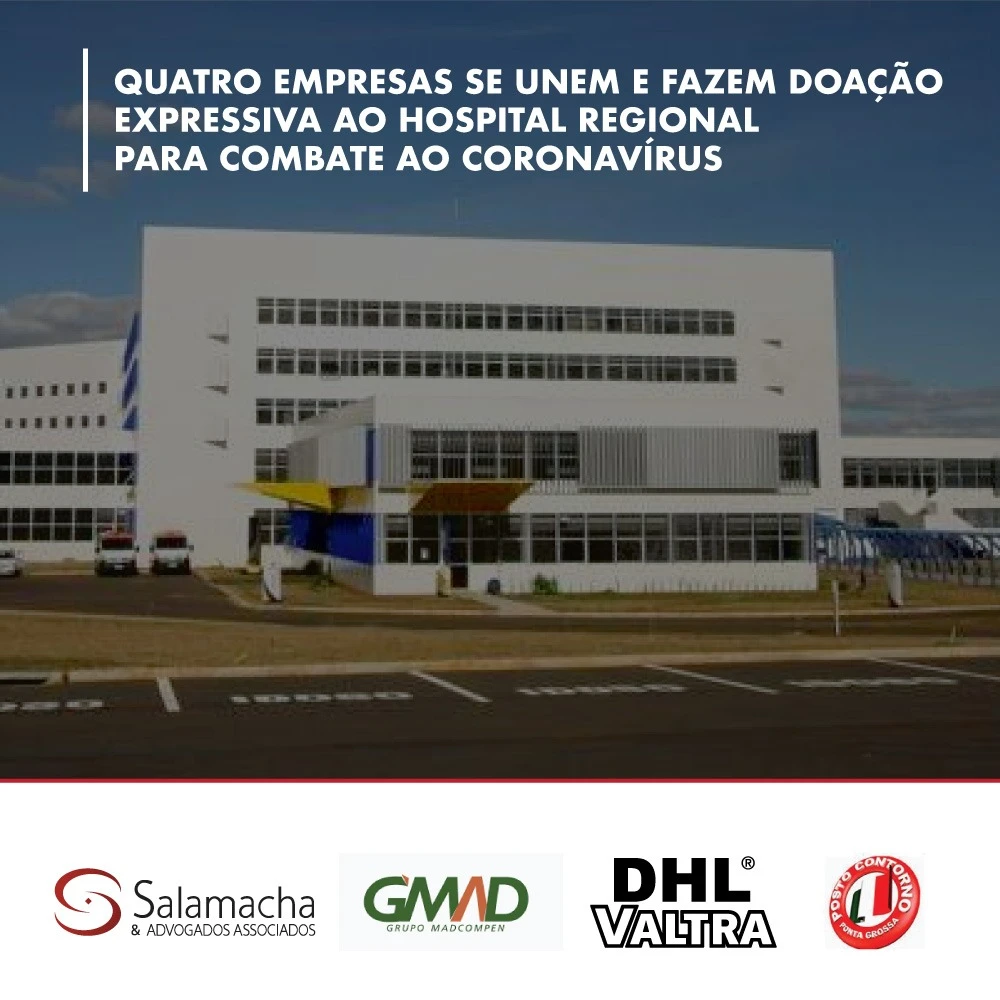 As empresas Salamacha Advogados, Grupo Gmad, DHL Valtra e Rede de Postos Contorno se uniram para ajudar o Hospital Universitário de Ponta Grossa (HU-UEPG), neste momento de combate ao coronavírus.