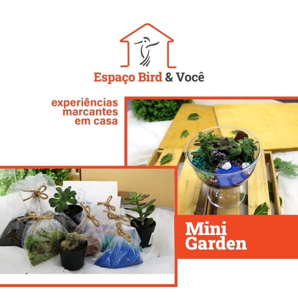 Aperitivos e dois pratos exclusivos - Bolinho Belluno e o espetinho de frango com provolone que deverão ser preparados em casa. No Mini Garden a pessoa receberá todos os itens para montagem de um terrario. O kit Bem Estar é o único individual. Com itens para relaxamento, ele visa proporcionar um momento de busca de bem estar físico e mental. “Junto com cada kit a pessoa receberá as instruções de finalização e uma sugestão de playlist para curtir o momento”, conta Thais. As informações sobre os kits, o que compõe cada um e como adquirir podem ser encontradas no site www.espacobird.com/suaexperienciaemcasa