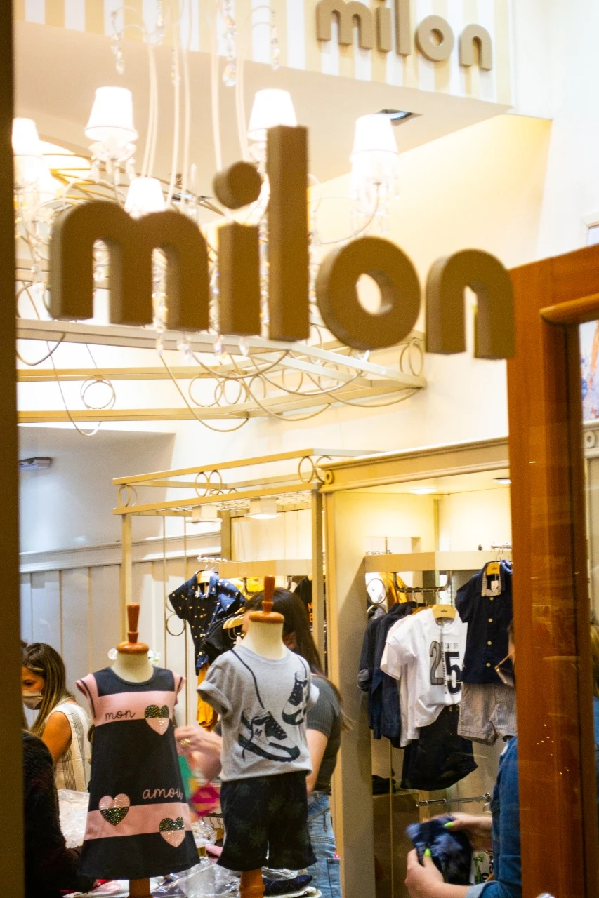 A Milon traz a solução completa para o guarda-roupa infantil com qualidade e estilo, vestindo meninos e meninas do tamanho RN ao 14. Linhas exclusivas trazem roupas para as mais variadas ocasiões, como batizado, festas, moda praia, acessórios, calçados e essenciais, além de enxovais e móveis. Outra característica da Milon são as ações especiais que sempre garantem diversão para os clientes.