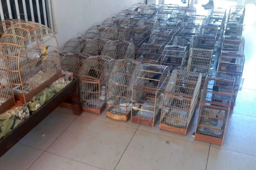 Uma equipe de policiais militares ambientais foi até a residência para verificar a situação e, chegando no local, foram localizados diversos pássaros espécies Trinca-Ferro, Azulão, Coleirinho, Pássaro-preto, Cardeal, Pimenta, Bicudo, Galo-da-campina, Canário-da-terra, Sabiá-laranjeira, Sangue-de-boi e Bico-de-veludo Eles estavam acondicionados em 103 gaiolas.