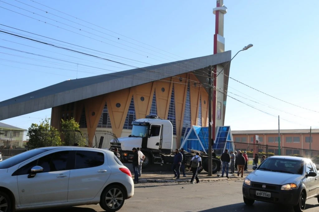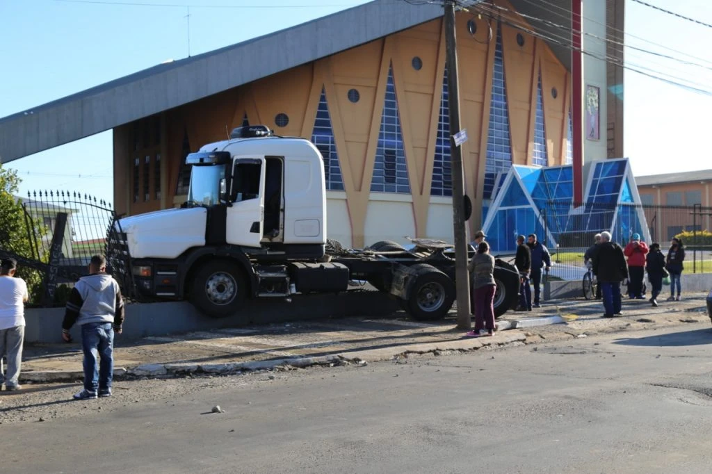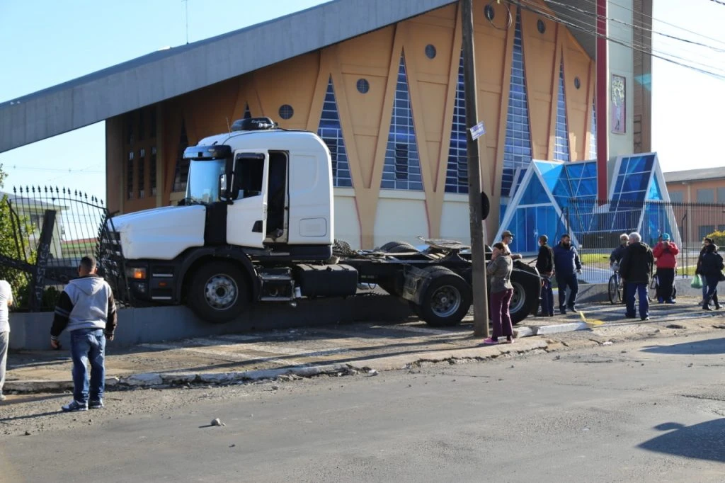 Fotos enviadas à redação do D'Ponta News mostram mais um acidente envolvendo um caminhão nesta sexta-feira, 3. Desta vez o condutor teria perdido a direção, subido na calçada e atingido a grade e o jardim da Igreja São Sebastião, na rua Dom Pedro II, na Nova Rússia.