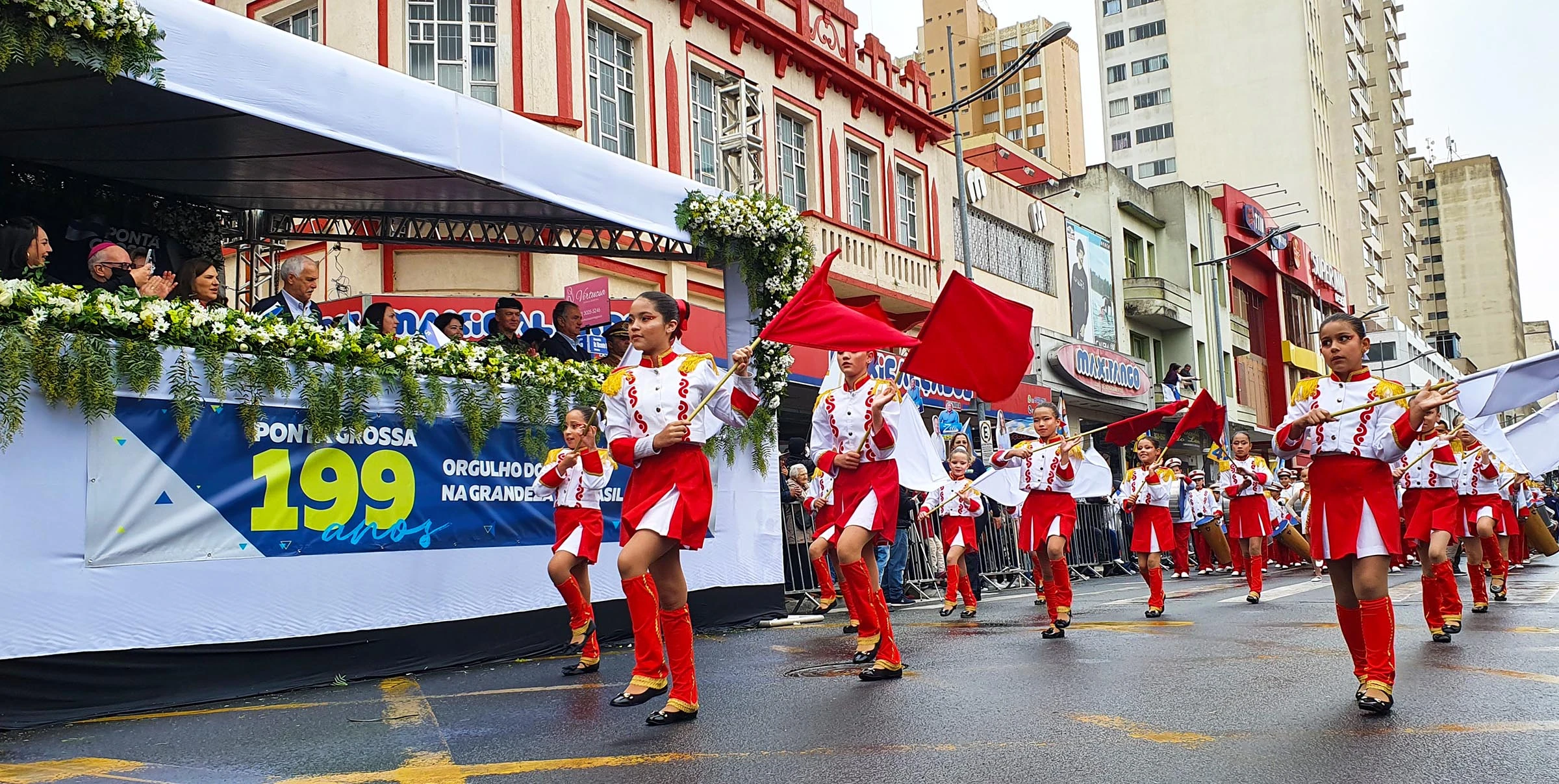 A possibilidade de chuva – que se confirmou por alguns minutos – não impediu que Ponta Grossa comemorasse seus 199 anos com um grande desfile na Rua Balduíno Taques e na Avenida Vicente Machado, onde se concentraram as comemorações e a grande maioria do público. Participaram do desfile 63 instituições, com aproximadamente 8 mil pessoas na avenida.