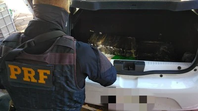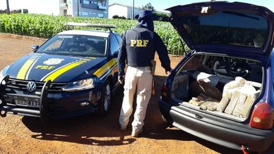 Um pouco mais tarde, por volta das 9h40, em Céu Azul (PR), na BR-277, policiais abordaram um motorista que conduzia um Corsa. Em vistoria, foram encontrados 43,3 quilos de maconha, que foram apreendidos e encaminhados, com o motorista, para a Polícia Civil para o registro da ocorrência.