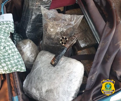 Em Santa Terezinha de Itaipu (PR), por volta das 18 horas, policiais abordaram um ônibus que fazia a linha Foz do Iguaçu (PR) - Florianópolis (SC). Ao verificarem o bagageiro, foram encontrados, em uma das bagagens, 3,6 kg de maconha, 550g de skunk e um revólver calibre 32 com três munições. A bagagem pertencia a um adolescente, que foi apreendido e conduzido até a Delegacia de Polícia Civil para o registro da ocorrência.