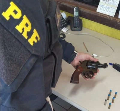 Cerca de 10h30, policiais abordaram dois homens num caminhão, na BR-163, em Quatro Pontes (PR). Durante a vistoria, encontraram um revólver calibre 38 com seis munições. Ele e o passageiro foram encaminhados para a Polícia Civil para o registro da ocorrência.