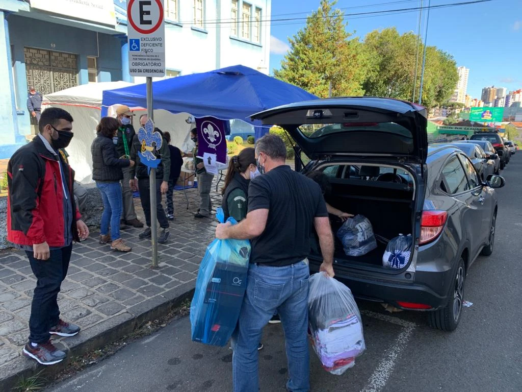 Neste sábado (25), os Grupos de Escoteiros Campos Gerais, Lagoa Dourada e Princesa dos Campos fizeram uma ação conjunta para arrecadar alimentos e agasalhos para auxiliar quem mais necessita neste momento de pandemia da Covid-19. A ação iniciou às 9h e segue até ás 16h, em frente ao Serviços de Obras Sociais (SOS) de Ponta Grossa, na Rua Joaquim Nabuco, 59.