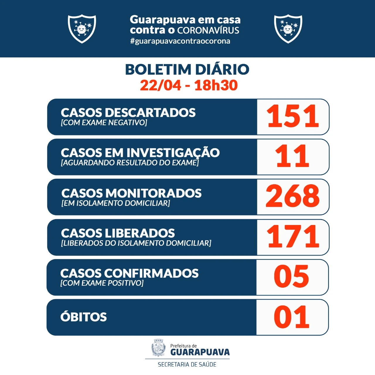 Em anexo, confira o boletim oficial com dados desta quarta-feira (22/04/2020).