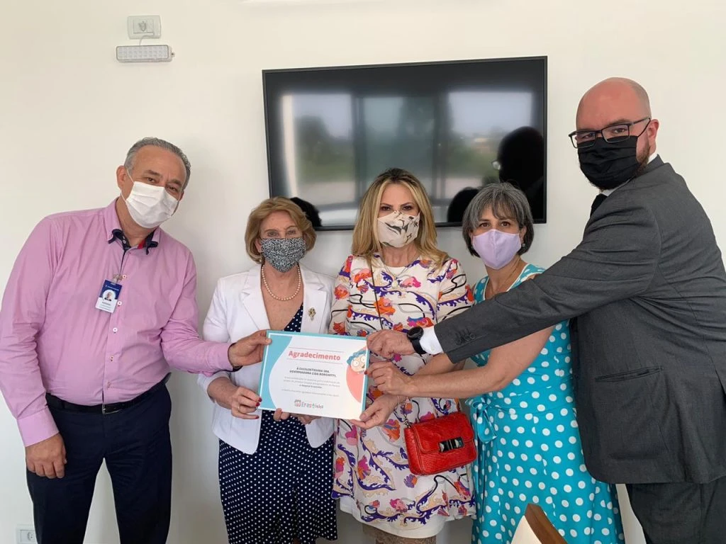 A ex-governadora do Paraná, Cida Borghetti, recebeu nesta sexta-feira (2) uma homenagem por ajudar na construção do Erastinho, o primeiro hospital oncopediátrico do Sul do país. O agradecimento foi entregue pelo superintendente do Hospital Erasto Gaertner, dr. Adriano Lago.