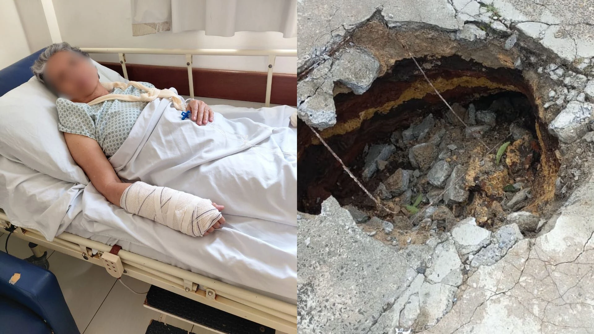 Apesar da tentativa, a esposa acabou se ferindo gravemente ao cair no buraco. De acordo com o relato, ela precisou ficar com o pulso imobilizado por 30 dias. O morador conta que procurou a Sanepar, mas teve o pedido de assistência negado, foi então orientado a buscar ajuda na Prefeitura. “Eles pediram uns 15 dias para vir olhar. Eu aguardei três semanas, não vieram. Fui novamente, fui na ouvidoria e fiz uma uma queixa registrada com documento”, relatou o senhor, de 75 anos.