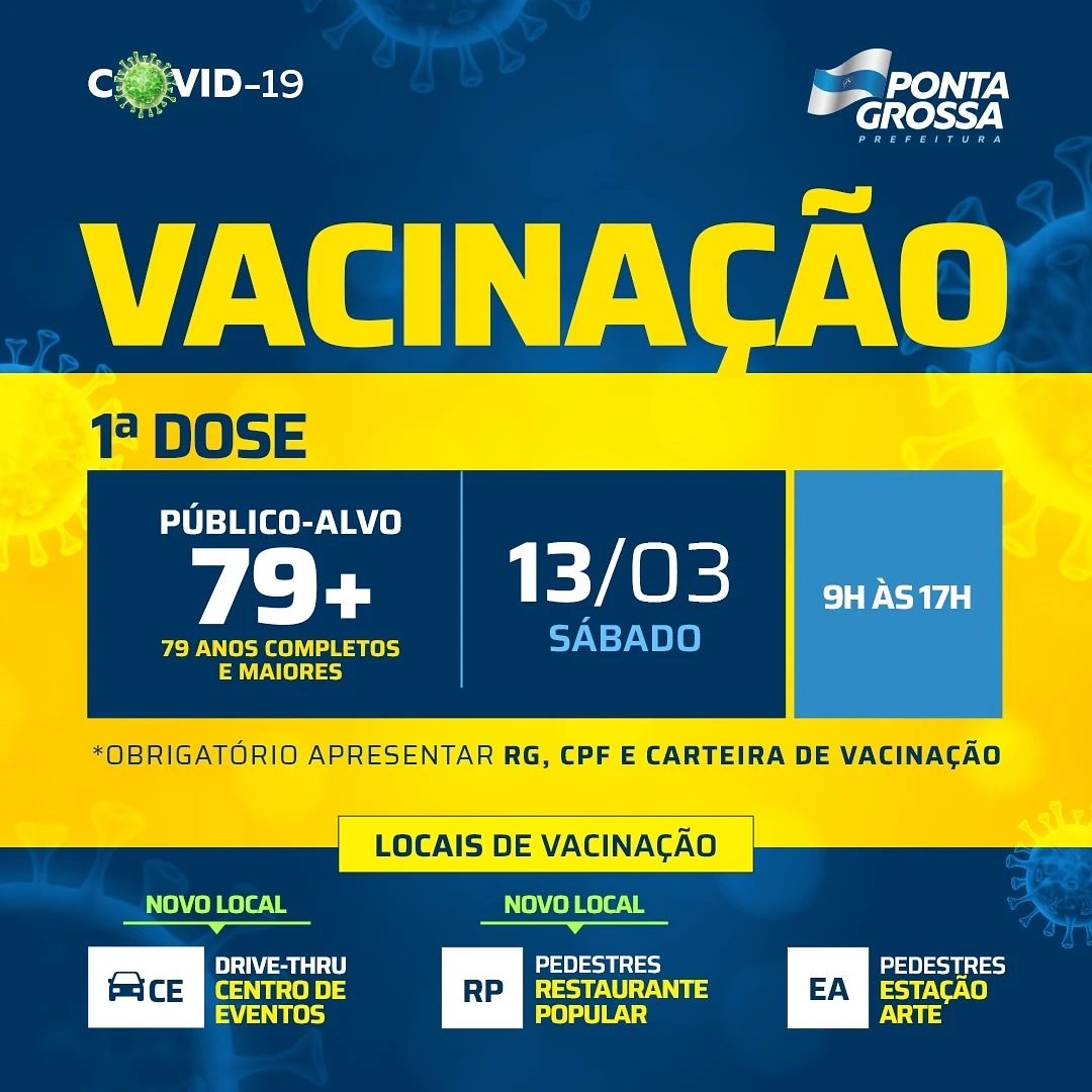 Neste sábado (13) a Prefeitura Municipal de Ponta Grossa, por meio da Fundação de Saúde (FMS), Atenção Primária e Departamento de Imunização, realizará o segundo mutirão de vacinação contra a Covid-19.