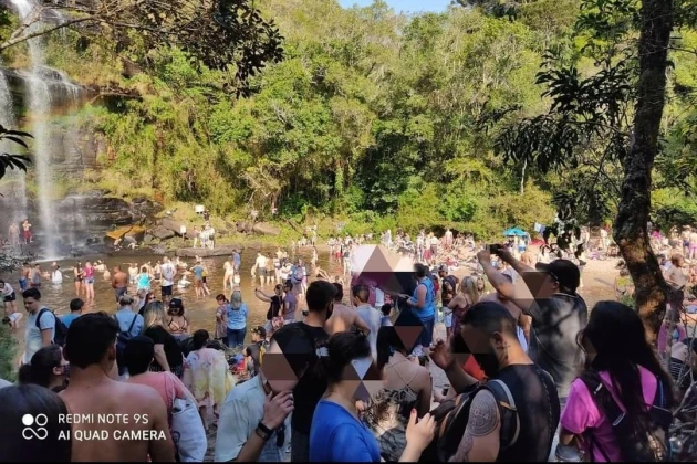 Uma foto que começou a circular pelas redes sociais neste domingo mostra a Cachoeira da Mariquinha, em Ponta Grossa, lotada de visitantes. As fotos seriam de ontem (06), quando a cidade chegou a registrar 28ºC.