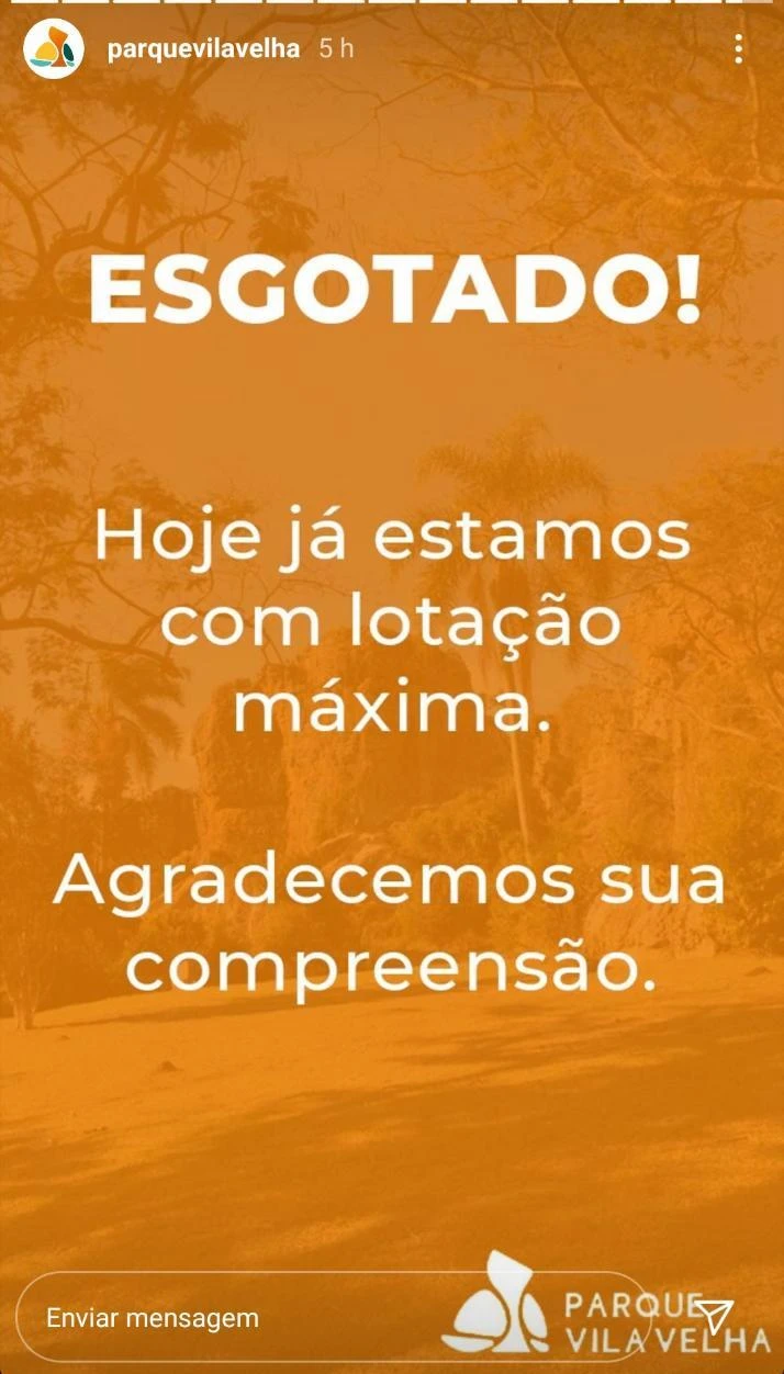 Outro ponto muito procurado pelos ponta-grossenses no domingo (06) foi o Parque Vila Velha. Reaberto à visitação desde sexta-feira (04), o Parque informou na tarde de ontem que estava lotado. Lembrando que para evitar aglomerações, Vila Velha está funcionando somente com 50% da capacidade.