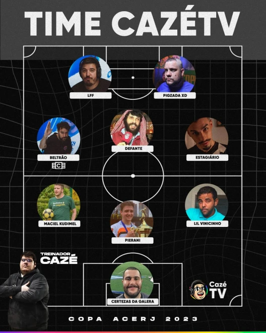 A equipe da Cazé TV foi composta pelos nomes: “Chicoin”,”Estagiário”, “Pigzada”, Guilherme Beltrão e por último mas não menos importante, o próprio Casimiro. Engajada, o time Cazé TV também participou da Copa ACERJ, competição que ocorreu entre os veículos de comunicação do estado do Rio de Janeiro no mês passado.