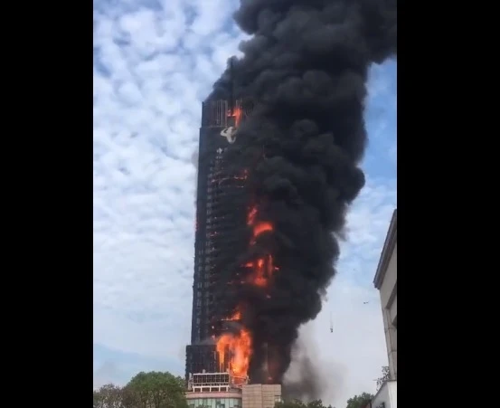 Incêndio impressionante hoje no prédio da companhia de telecomunicações chinesa na cidade de Changsha, no sudeste do paíspic.twitter.com/ZMdlOuKyEK