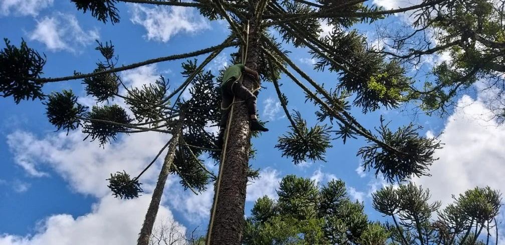 Um jovem de 19 anos foi resgatado no sábado (3) após ficar por cerca de 2 horas pendurado em um árvore a 20 metros de altura em São Joaquim, na Serra catarinense. Segundo o Corpo de Bombeiros, o rapaz subiu no tronco da araucária para colher pinha, se sentiu cansado e não conseguiu fazer o caminho de volta.
