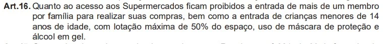 Além da permissão para que crianças, adolescentes e mais de um membro da mesma família frequentem os supermercados, o decreto 19.277 também liberou a venda de bebidas alcoólicas até meia-noite, a reabertura dos cinemas com 30% de ocupação e proibiu o comércio e consumo de alimentos no local. Estabelecimentos comerciais, culturais e de eventos também ficaram autorizados a funcionar em horário normal de atendimento, com limitação de 50% da capacidade de ocupação.