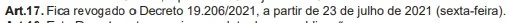 Artigo 17 - Decreto 19.277/2021 (em vigor a partir de 23/07/2021) - Clique aqui para ler o Diário Oficial completo