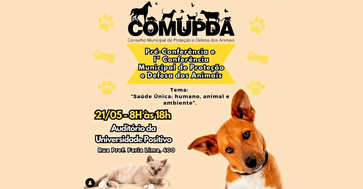 Os interessados no assunto também estão convidados para participar da pré-conferência de Proteção e Defesa dos Animais, que será realizada no mesmo dia (domingo), das 8h às 12h, na Universidade Positivo. A temática central da pré-conferência e da conferência será “Saúde Única: humano, animal e ambiente”. Quem quiser contribuir com perguntas pode preencher o formulário disponível nas redes sociais do Conselho Municipal de Defesa dos Animais (Comupda) ou pedir a palavra durante o encontro. O link para o formulário está no site