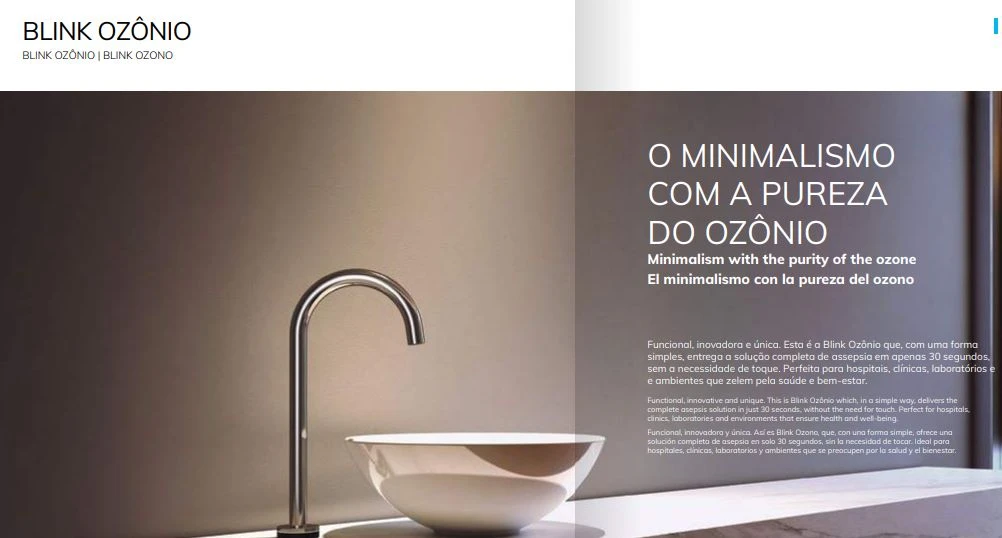 Durante os anos da pandemia, houve uma grande recomendação envolvendo a questão do toque em objetos, visto que o vírus podia se propagar dessa forma. Pensando nisso, a Blink Ozônio aposta em um grande diferencial. A linha foi projetada para ajudar a evitar o contágio da doença.