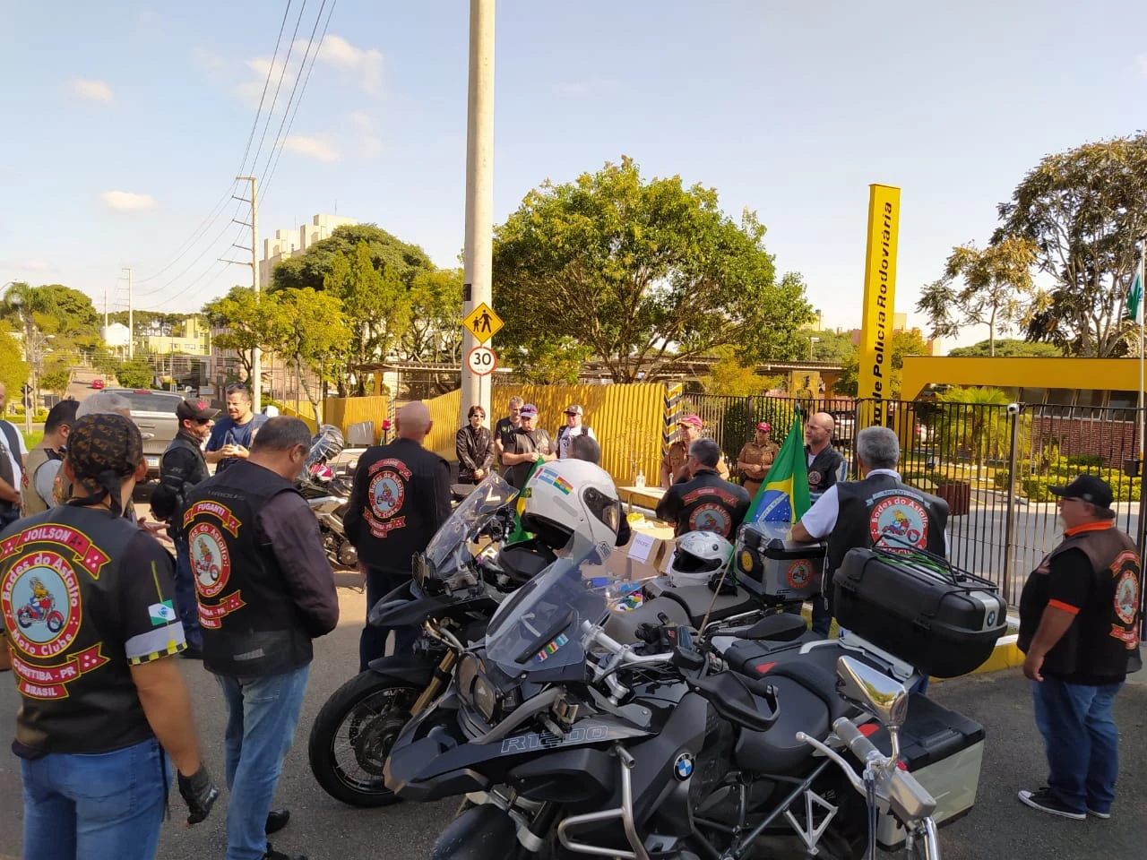 Grupos de motociclistas estiveram na sede do Batalhão de Polícia Rodoviária (BPRv), em Curitiba, para entregar produtos de higiene e álcool gel a serem destinados para entidades, famílias e hospitais que estão na linha de frente no combate ao coronavírus (Covid-19). Os materiais serão repassados à Defesa Civil Estadual para que sejam distribuídos aos que mais necessitam.