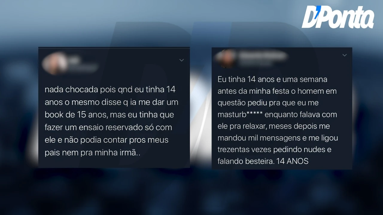 As denúncias ficaram entre os assuntos mais comentados do Twitter no Brasil. As mulheres relataram como os supostos abusos aconteciam. "Uma vez, fui fotografar com um tal fotógrafo daqui de Ponta Grossa e ele pediu para eu ir sem calcinha no dia do ensaio. Meninas, por favor, não caiam nessa", escreveu uma das acusadoras. "Nada chocada, pois, quando eu tinha 14 anos, o mesmo disse que ia me dar um book de 15 anos, mas que eu tinha de fazer um ensaio reservado só com ele e não podia contar nem para os meus pais, nem para minha irmã", revelou garota.