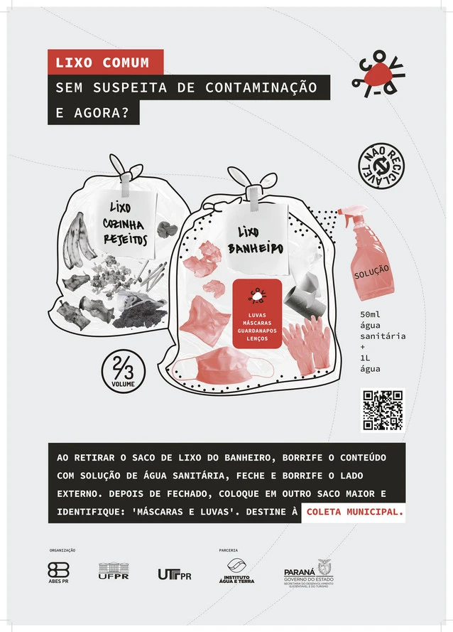 ELABORAÇÃO – Os cartazes foram criados pela Universidade Federal do Paraná (UFPR), Universidade Tecnológica Federal do Paraná (UTFPR), Secretaria de Estado do Desenvolvimento Sustentável e do Turismo, Instituto Água e Terra (IAT) e Associação Brasileira de Engenharia Sanitária e Ambiental (Abes) – Seção Paraná.