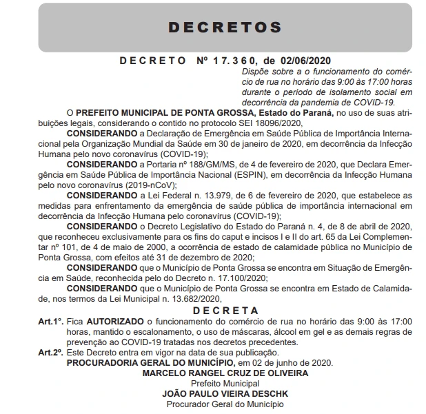 Na manhã desta terça-feira (2), o prefeito Marcelo Rangel anunciou que o horário de abertura do comércio seria estendido em duas horas. Desde o início de abril, as lojas vinham trabalhando no sistema de escalas e com atendimento das 10h às 16h como medida de combate à Covid-19.