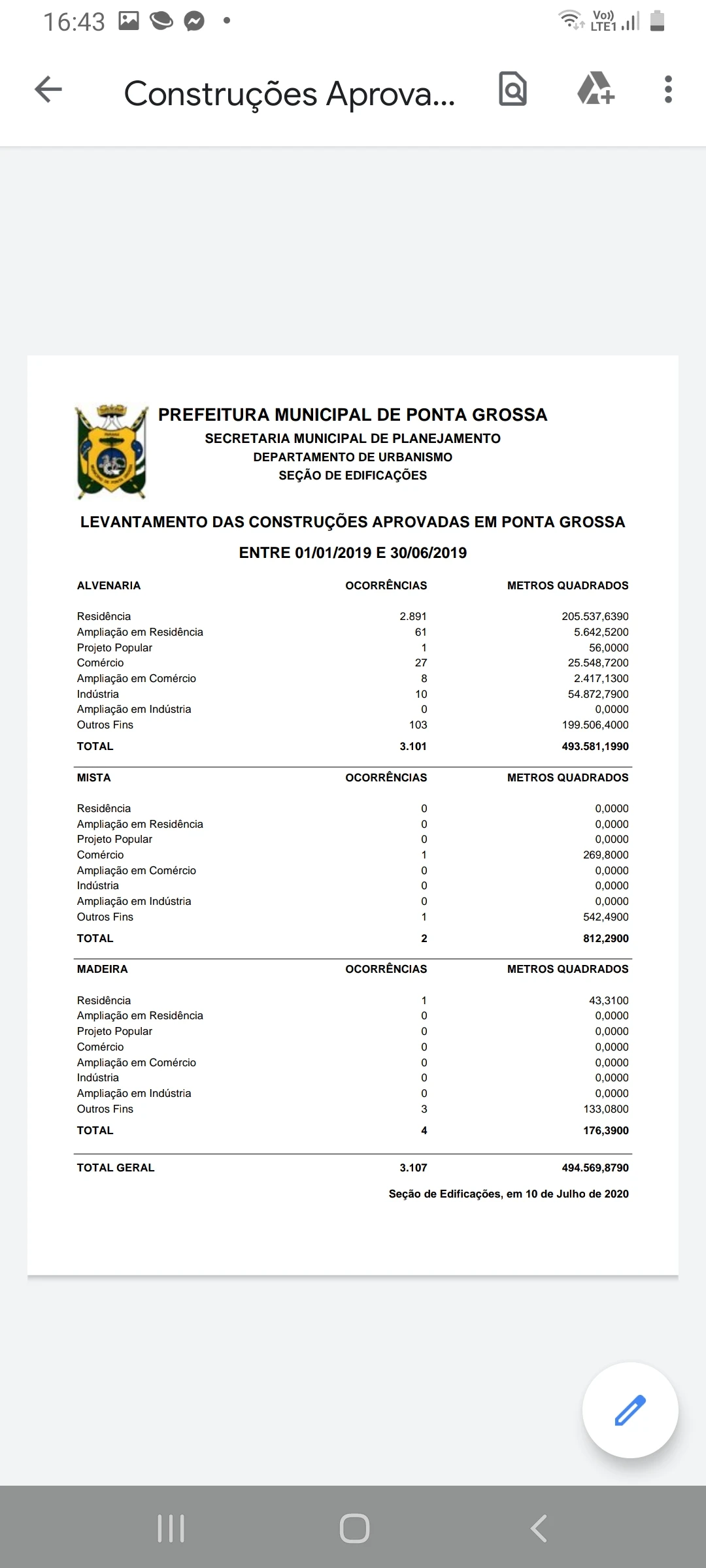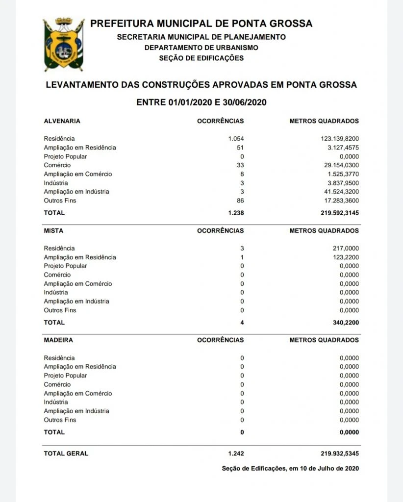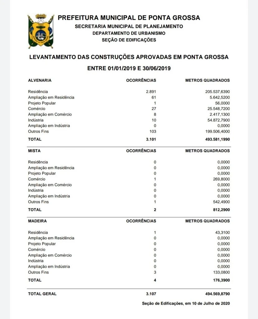 Um dos reflexos causados pela pandemia do novo coronavírus é a queda significativa de novos investimentos na construção civil. De acordo com um levantamento feito pelo portal D'Ponta News, o número de alvarás despachados pela Prefeitura para a realização de obras é 55% menor que o mesmo período de 2019. Os dados são referentes aos seis primeiros meses do ano.