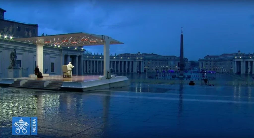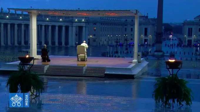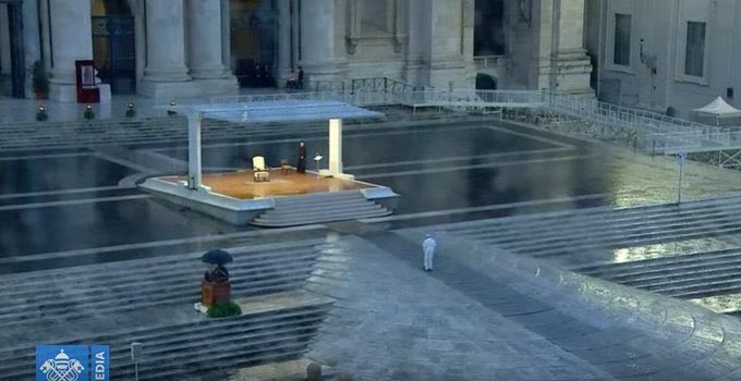 Nesta sexta-feira, o Papa Francisco rezou sozinho diante da imensa praça de São Pedro vazia. De acordo com o G1, não há registro de gesto semelhante na história do Vaticano.