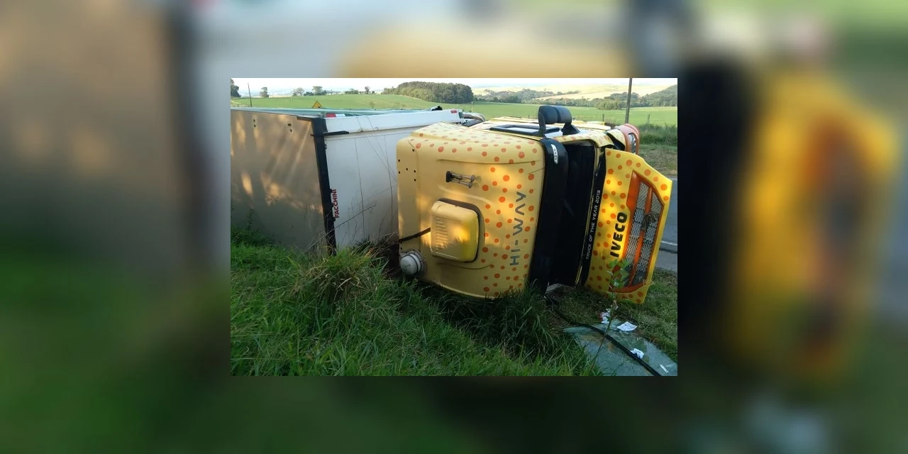 Na tarde desta terça-feira (29) um caminhoneiro que trafegava pela PR-151, no sentindo Palmeira para Ponta Grossa, se viu obrigado a jogar o caminhão para o canteiro lateral da rodovia, tombando o veículo, já que no sentido contrário, um motorista que realizava uma ultrapassagem proíbida provavelmente acabaria por colidir frontalmente com o caminhão.