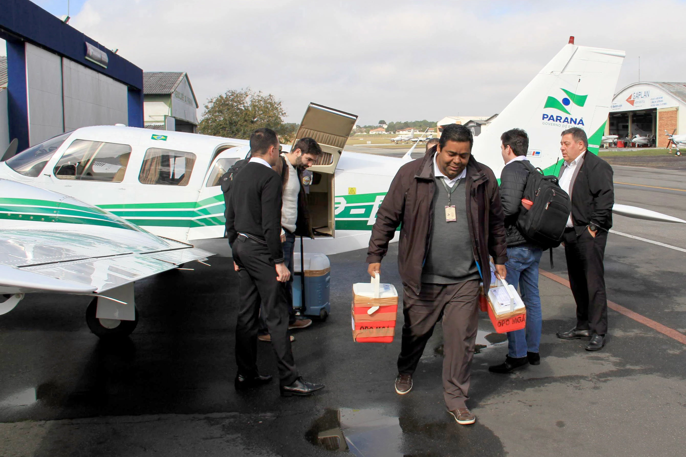 APOIO AÉREO – Doadores que estejam até 200 quilômetros de distância do receptor, o SET/PR faz o transporte dos órgãos e/ou tecidos por via terrestre. Além desta distância, é solicitado apoio aéreo para agilizar o procedimento. O Paraná conta com a ajuda da frota de aeronaves do Governo do Estado, que é formada por quatro aviões e um helicóptero.